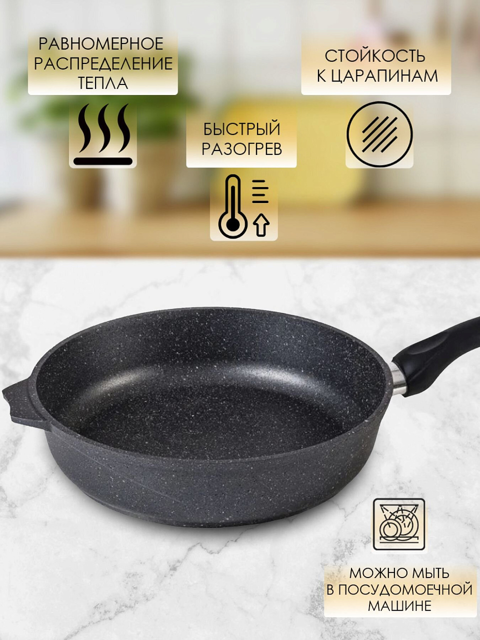 Сковорода литой алюминий 24 см Мечта Гранит: антипригарное покрытие, толщина дна 6 мм, идеальна для жарки без масла — готовьте вкусно и легко!