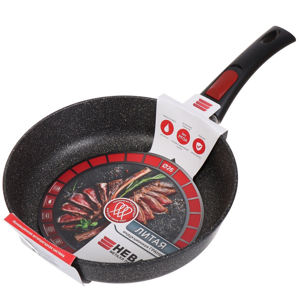 Вы можете приобрести «Сковорода литой алюминий, 26 см, антипригарное покрытие, Нева Металл Посуда, Гранит, съемная ручка, индукция, L18026i» и другие товары в нашем интернет-магазине в Обнинске по низким ценам и с бесплатным самовывозом.