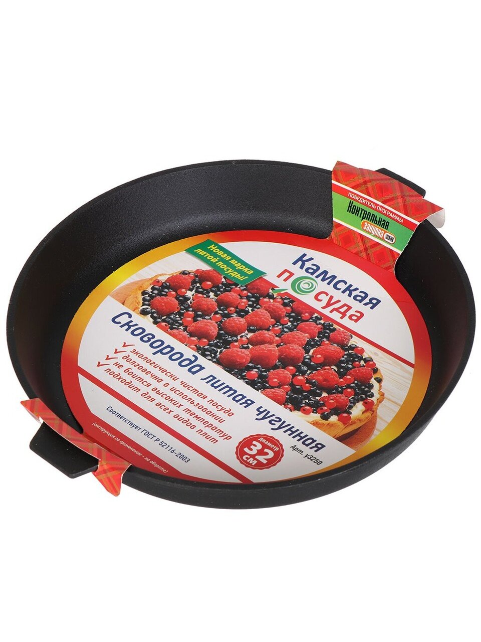 Оформите заказ на чугунную сковороду Камская посуда d32 см по выгодной цене — получите надежную посуду с гарантией 12 месяцев и бесплатной консультацией по уходу.