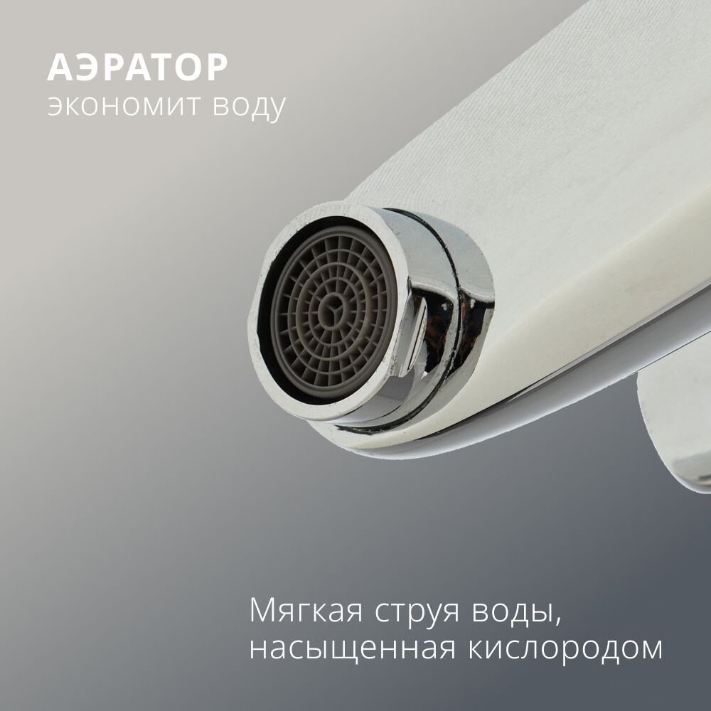 Корпус изготовлен из цинкового сплава с глянцевым хромированием, внутри установлен долговечный керамический картридж для плавного и надежного управления потоком воды.