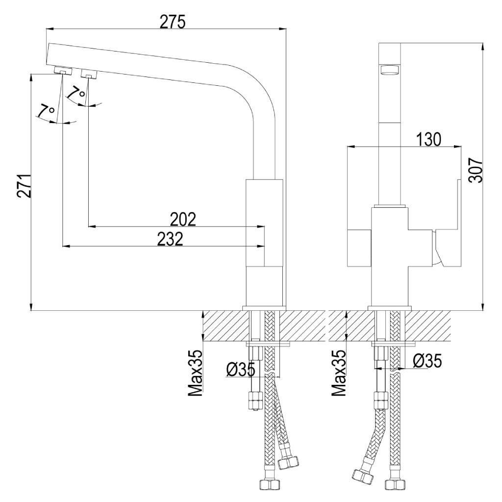 Модель предназначена для одновременного подключения к водопроводу и фильтру, что позволяет снабжать кухню как обычной, так и питьевой водой.