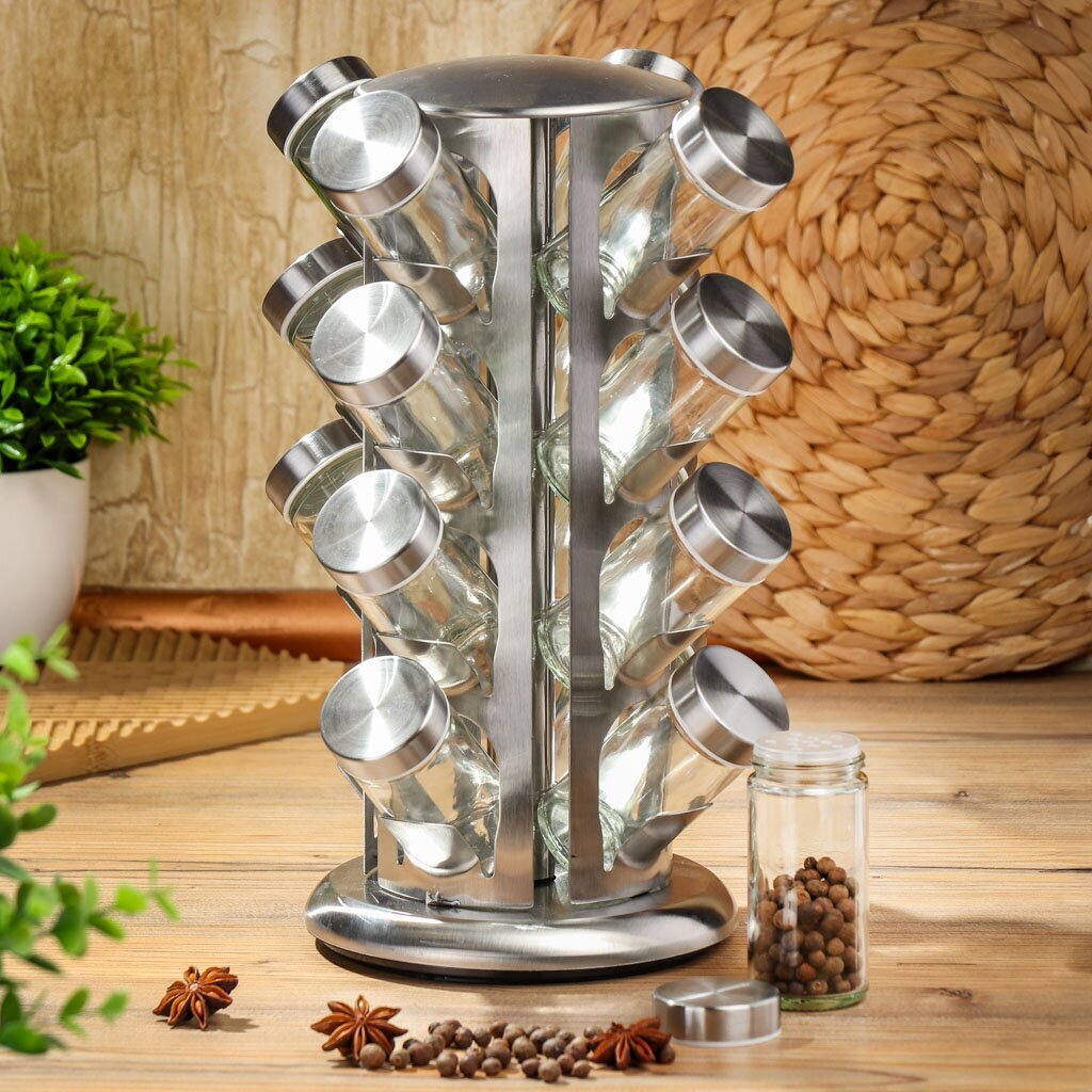 Набор для специй на вращающейся подставке станет отличным подарком для любой хозяйки!