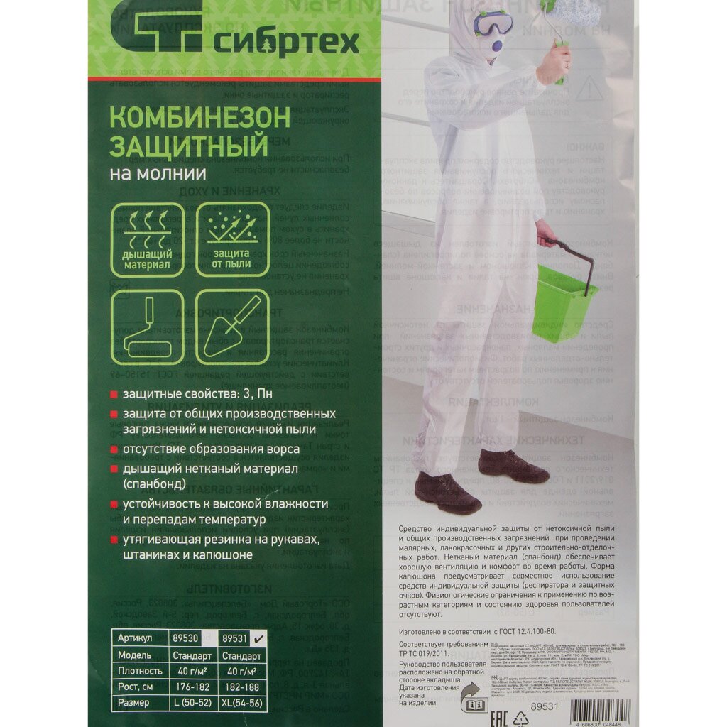 Комбинезон защитный СТАНДАРТ Сибртех 40 г/м2: надежная защита для малярных и строительных работ, подходит для роста 182–188 см. Экономьте время и здоровье!
