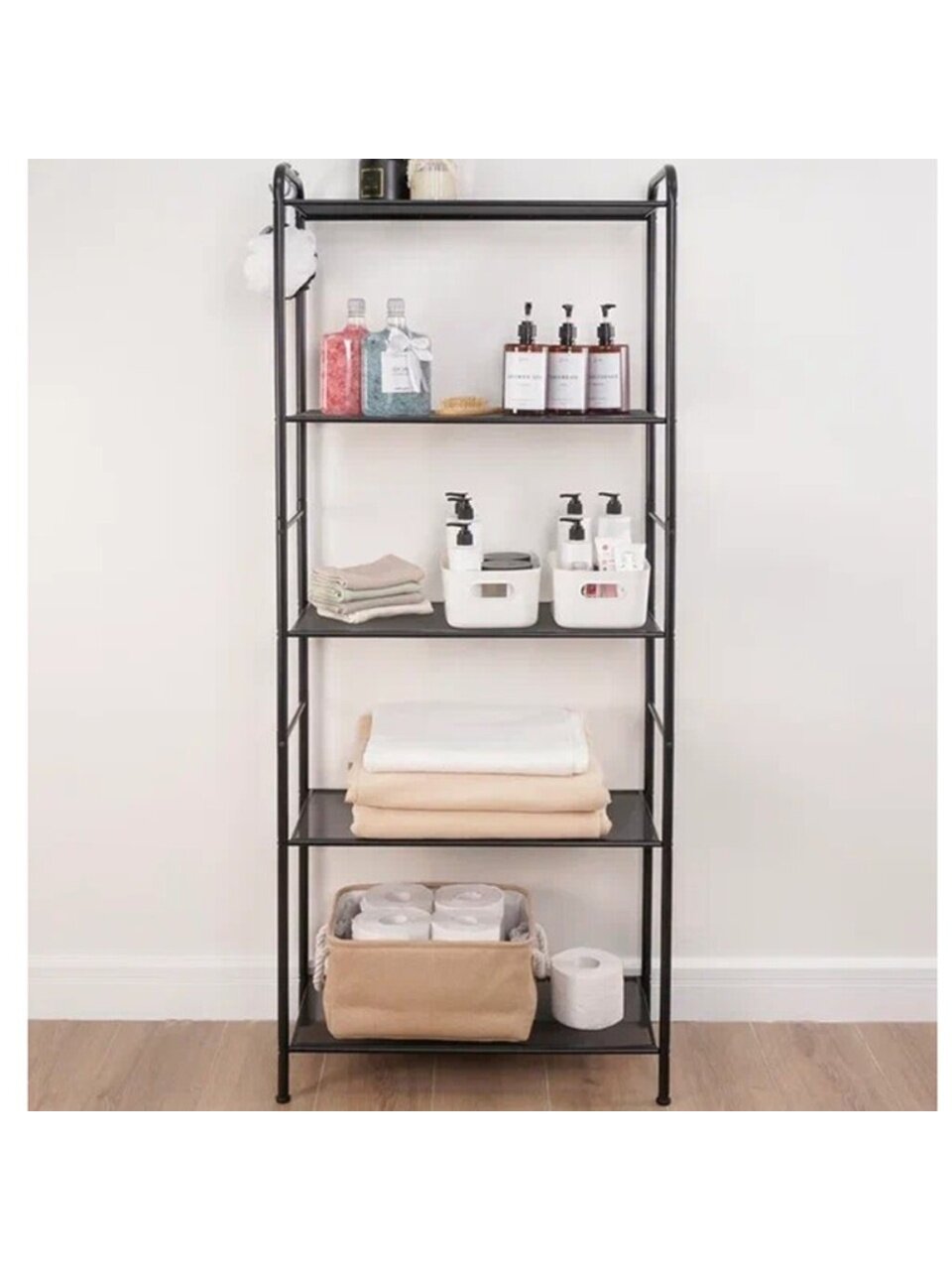 - Система хранения имеет 5 металлических сетчатых полок, каждая из которых выдерживает нагрузку до 8 кг.