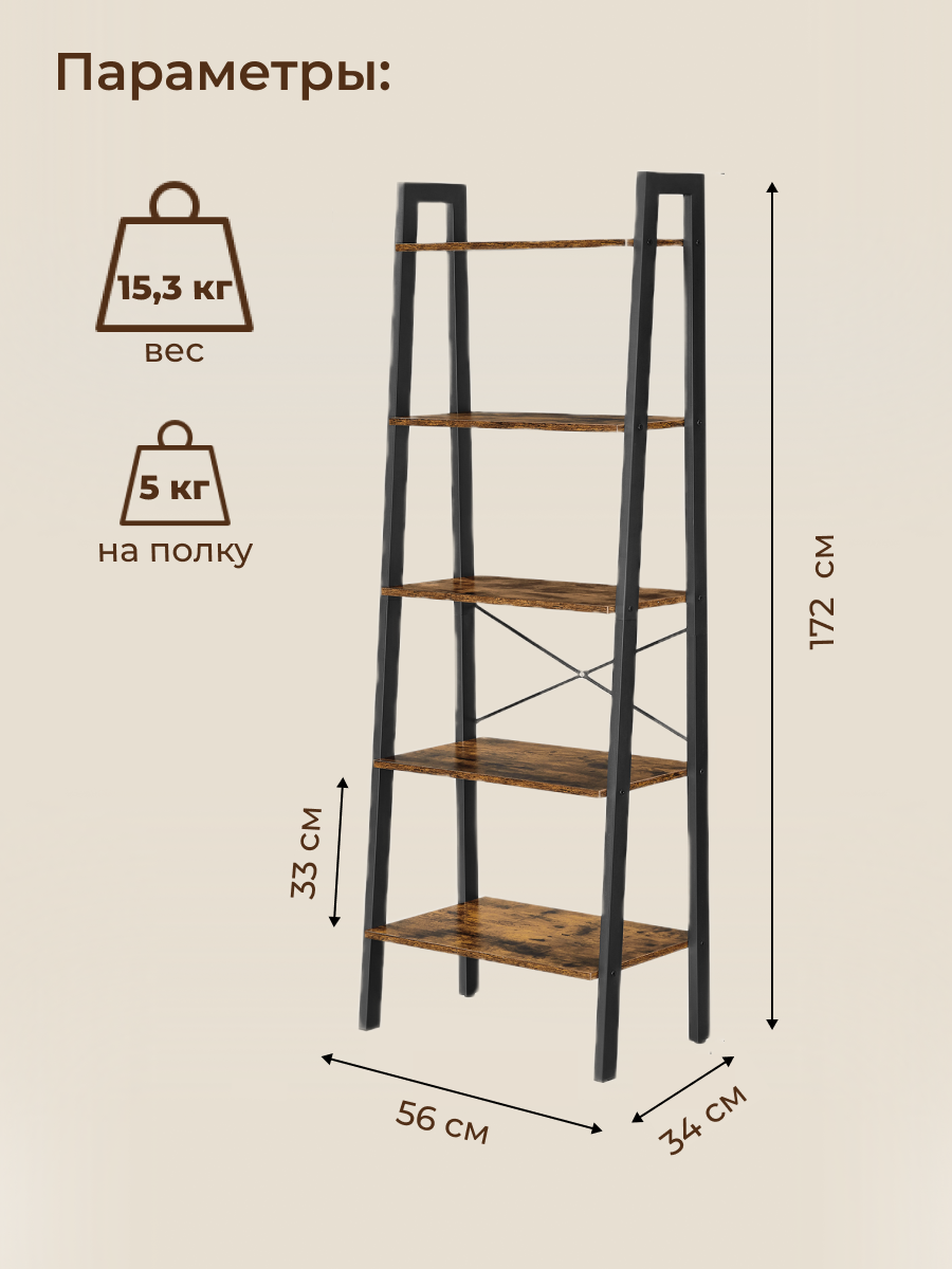 Вы можете приобрести «Полка-стеллаж универсальный, ДСП+сталь, 5 секций, 56х34х172 см, Лофт, LLS45X» и другие товары в нашем интернет-магазине в Армавире по низким ценам и с бесплатным самовывозом.