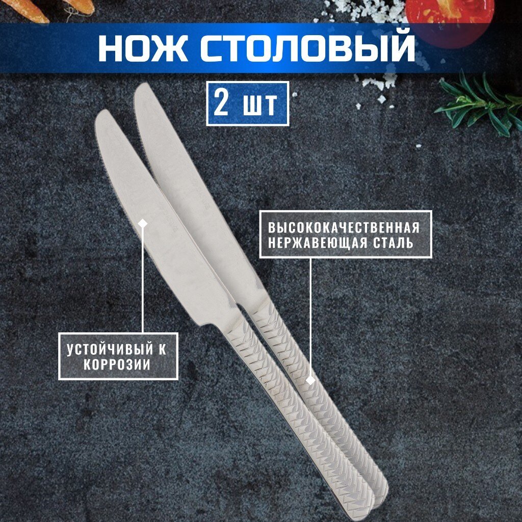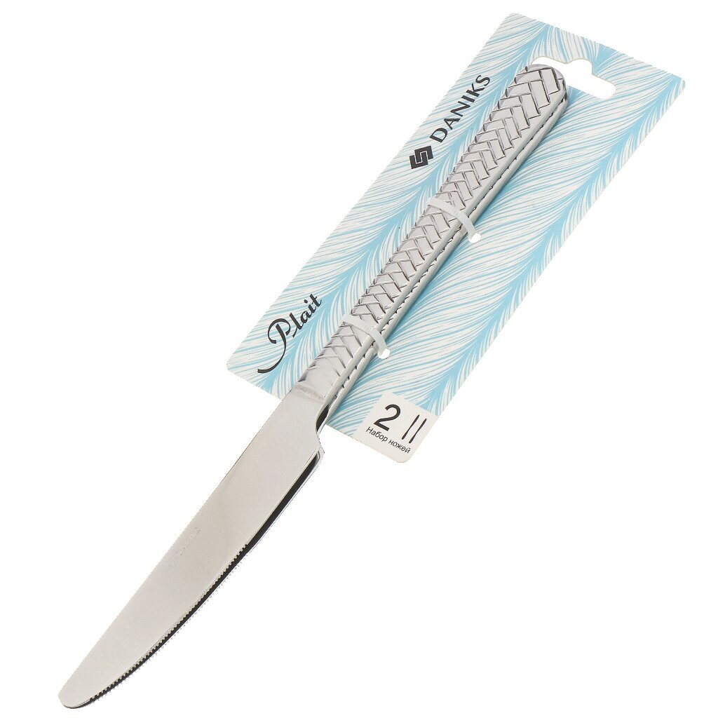Столовые ножи Daniks Plait из нержавеющей стали — набор 2 шт. для сервировки стола без лишних затрат. Оптимальный выбор для дома, дачи и подарка.
