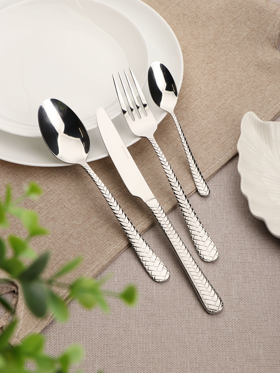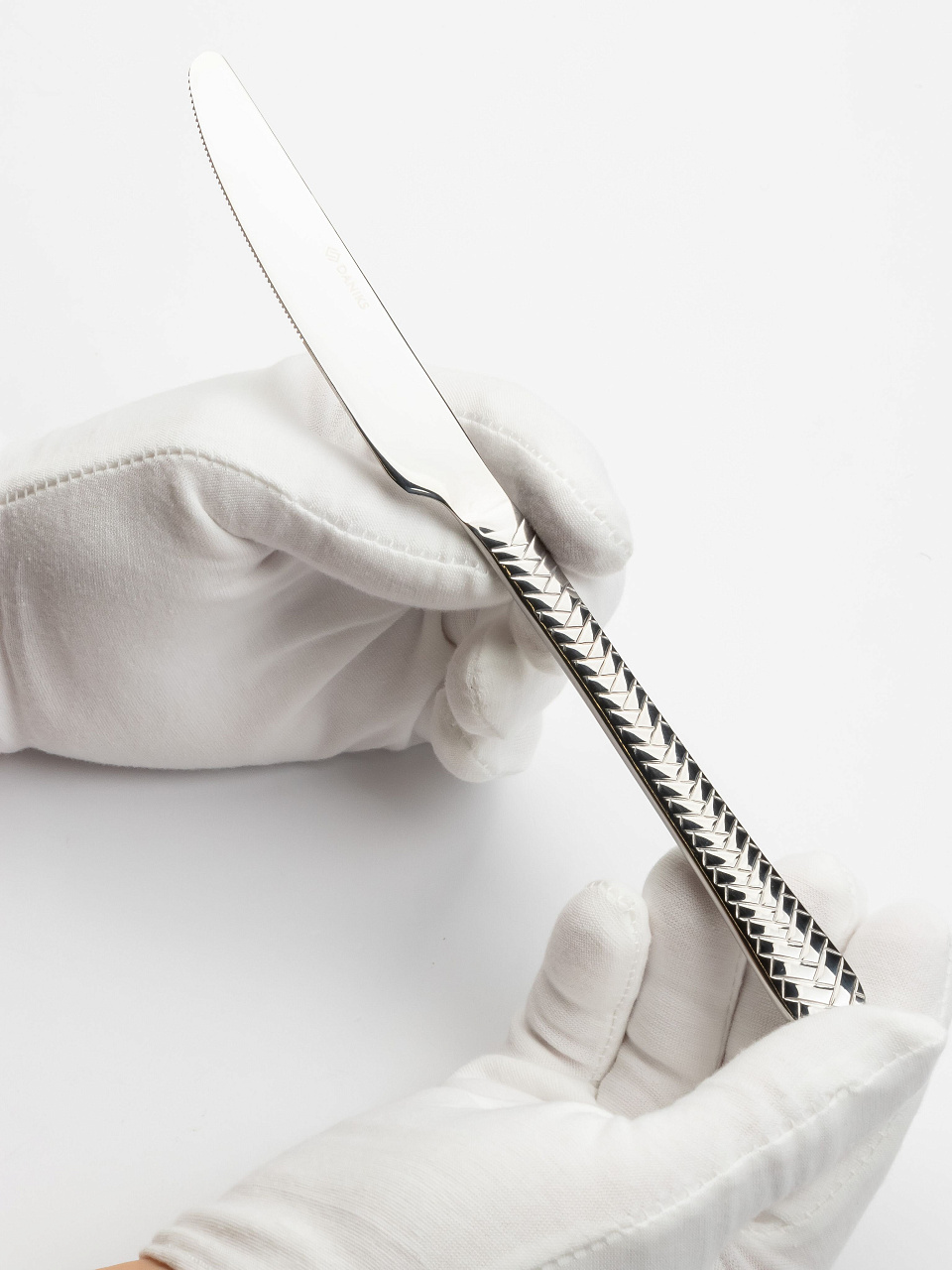 Набор ножей Daniks Plait — практичный выбор для тех, кто ищет столовые приборы из нержавеющей стали без покрытия. Оптимальная длина 23,5 см подходит для нарезки мяса, рыбы, овощей и фруктов. Благодаря цельнометаллической ручке ножи удобно лежат в руке и не скользят даже при длительном использовании. Если вы ищете, какой столовый нож выбрать для сервировки или что лучше для пикника, обратите внимание на эту модель: она не требует особого ухода и не ржавеет при правильном использовании.