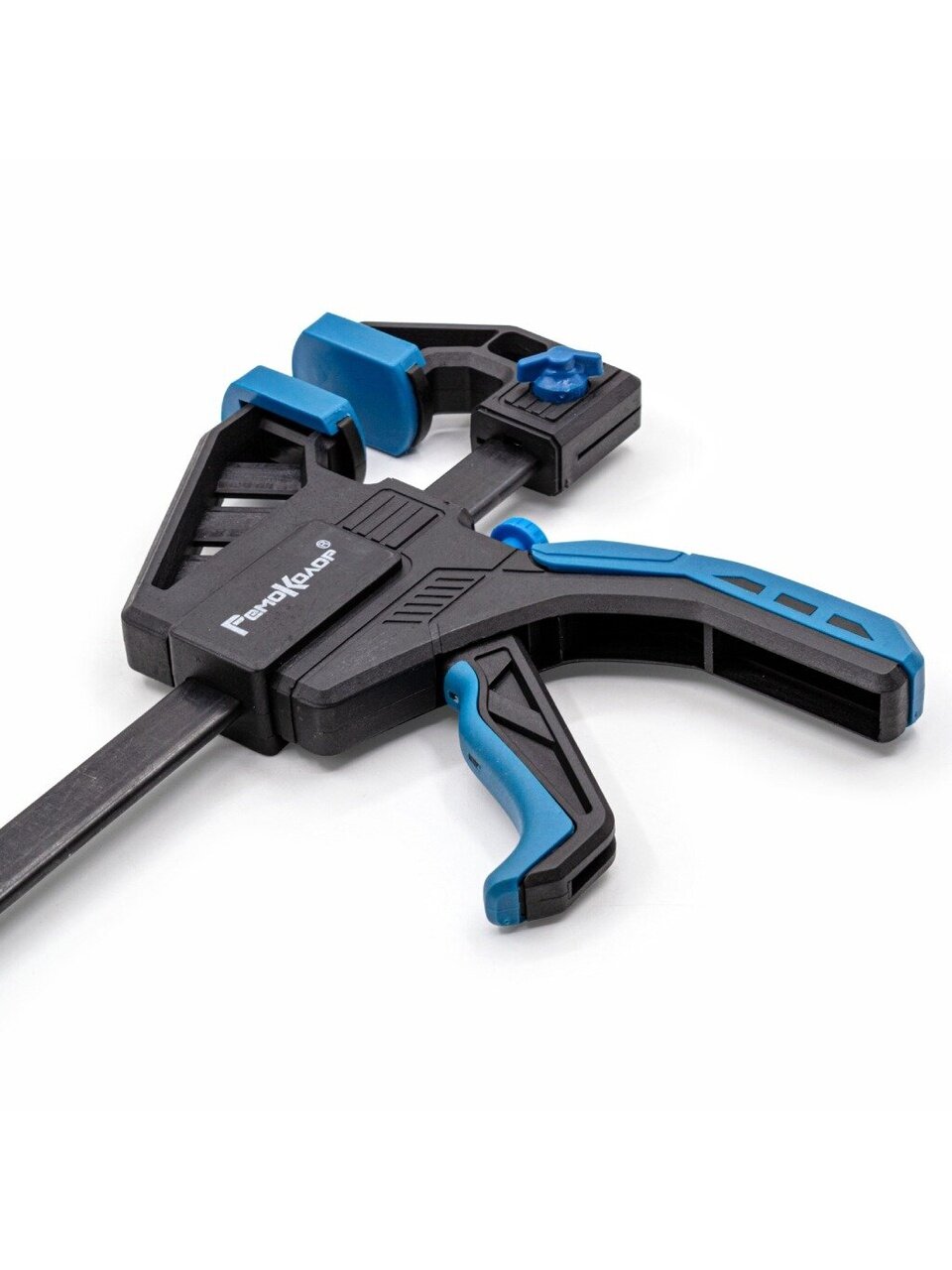 F-образная струбцина имеет вид рамы с подвижным элементом, движение которого и позволяет осуществлять фиксацию. Подобное оснащение определенно заинтересует профессионалов. Струбцина производится из качественных материалов.