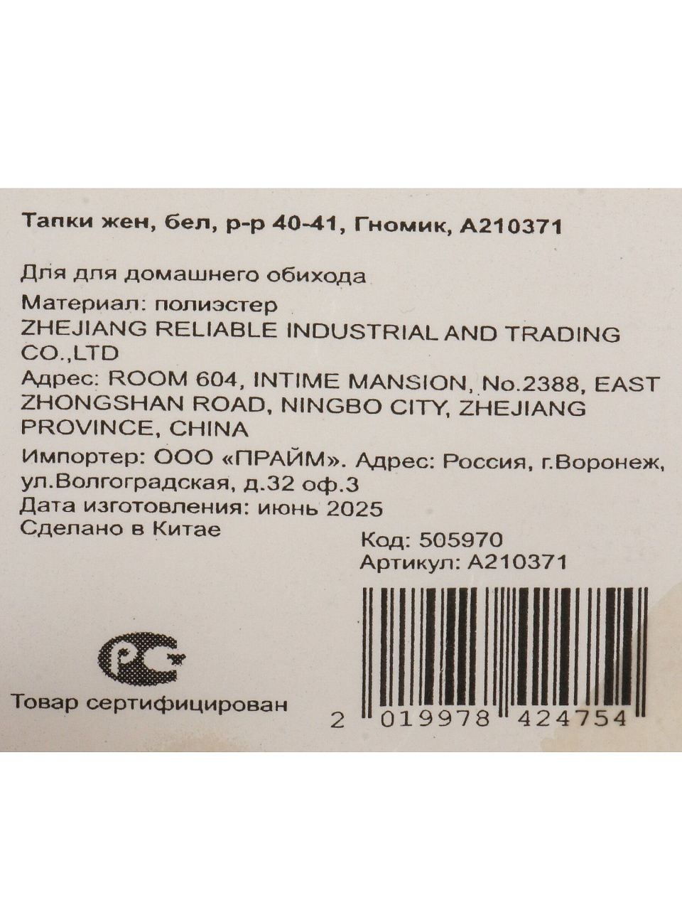 Тапки жен, бел, р-р 40-41, Гномик, A210371