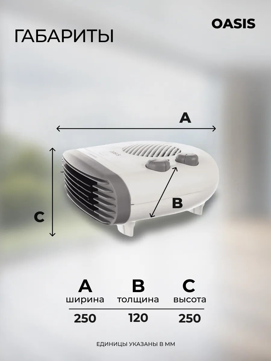 Тепловентиляторы «Oasis» это компактные отопительные приборы, максимально простые в эксплуатации и чрезвычайно удобные для быстрого обогрева воздуха и создания комфортной атмосферы в помещении в холодное время года (ранняя весна, осень, зима). Имеют три режима работы: вентилятор, обогрев на пониженной и высокой мощности.