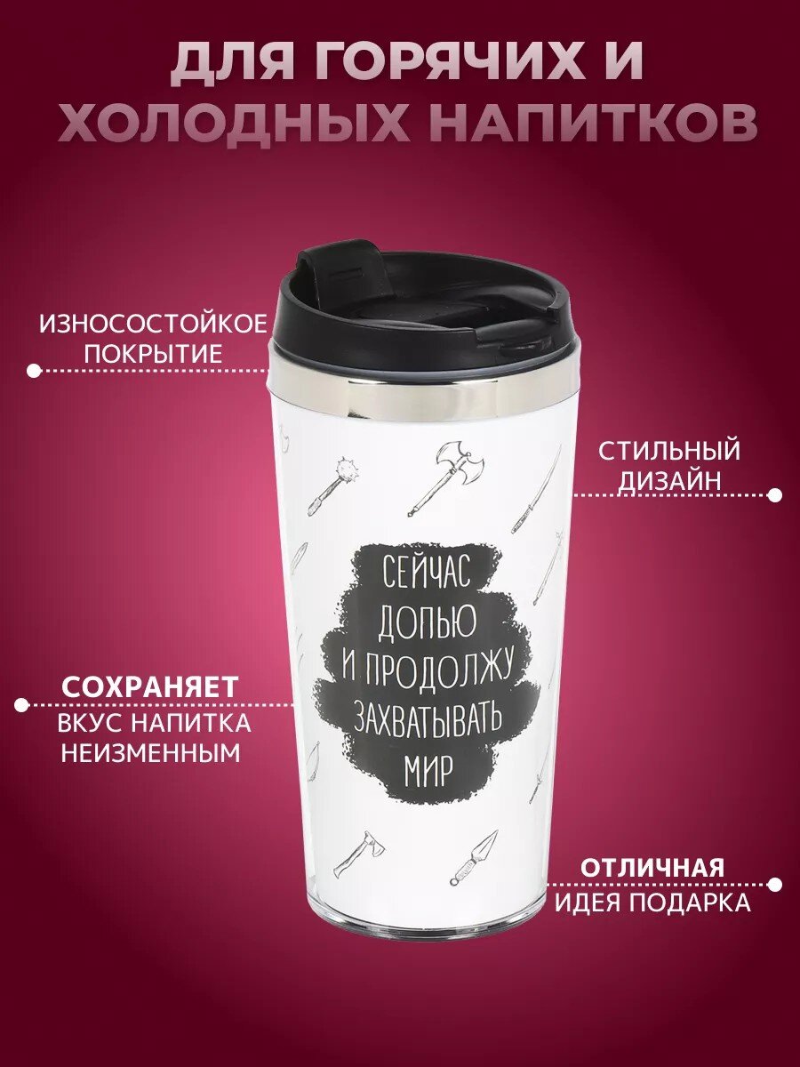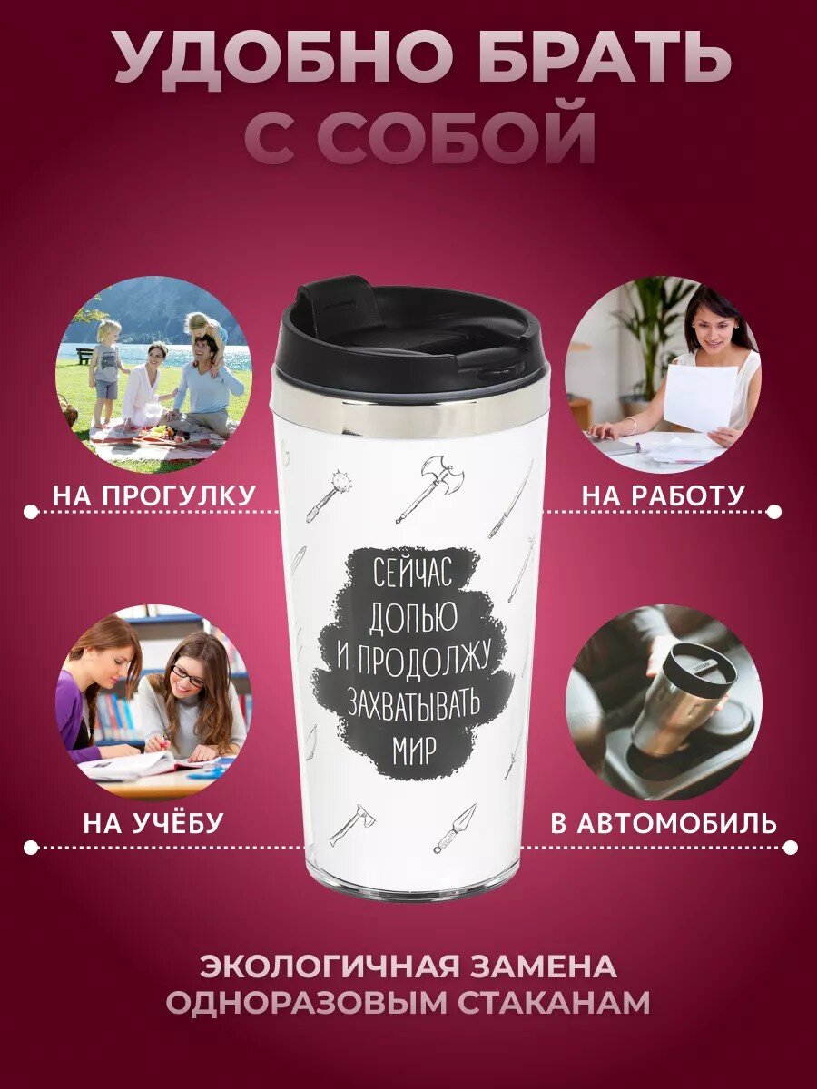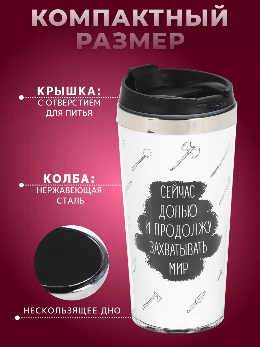 Термокружка Daniks «Захватывать мир», 0.42 л — стильное решение для города и авто. Двойная сталь, удобство, тепло и холод до 2 часов. Идеально для подарка!