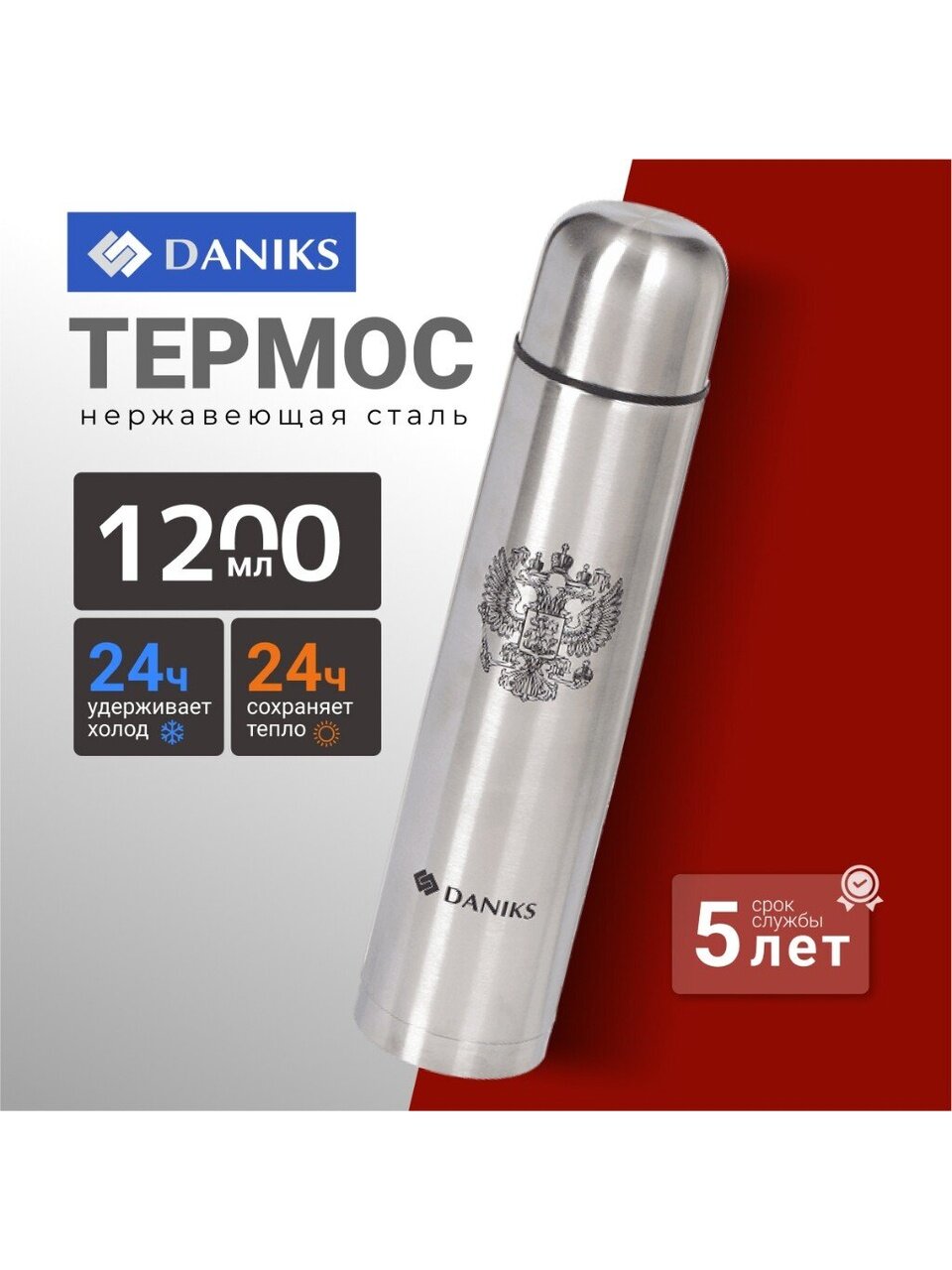 Термос Daniks 1.2 л из нержавеющей стали — сохраняет напитки горячими или холодными до 24 часов. Узкая горловина, ударопрочность, выгодная цена для города и природы.