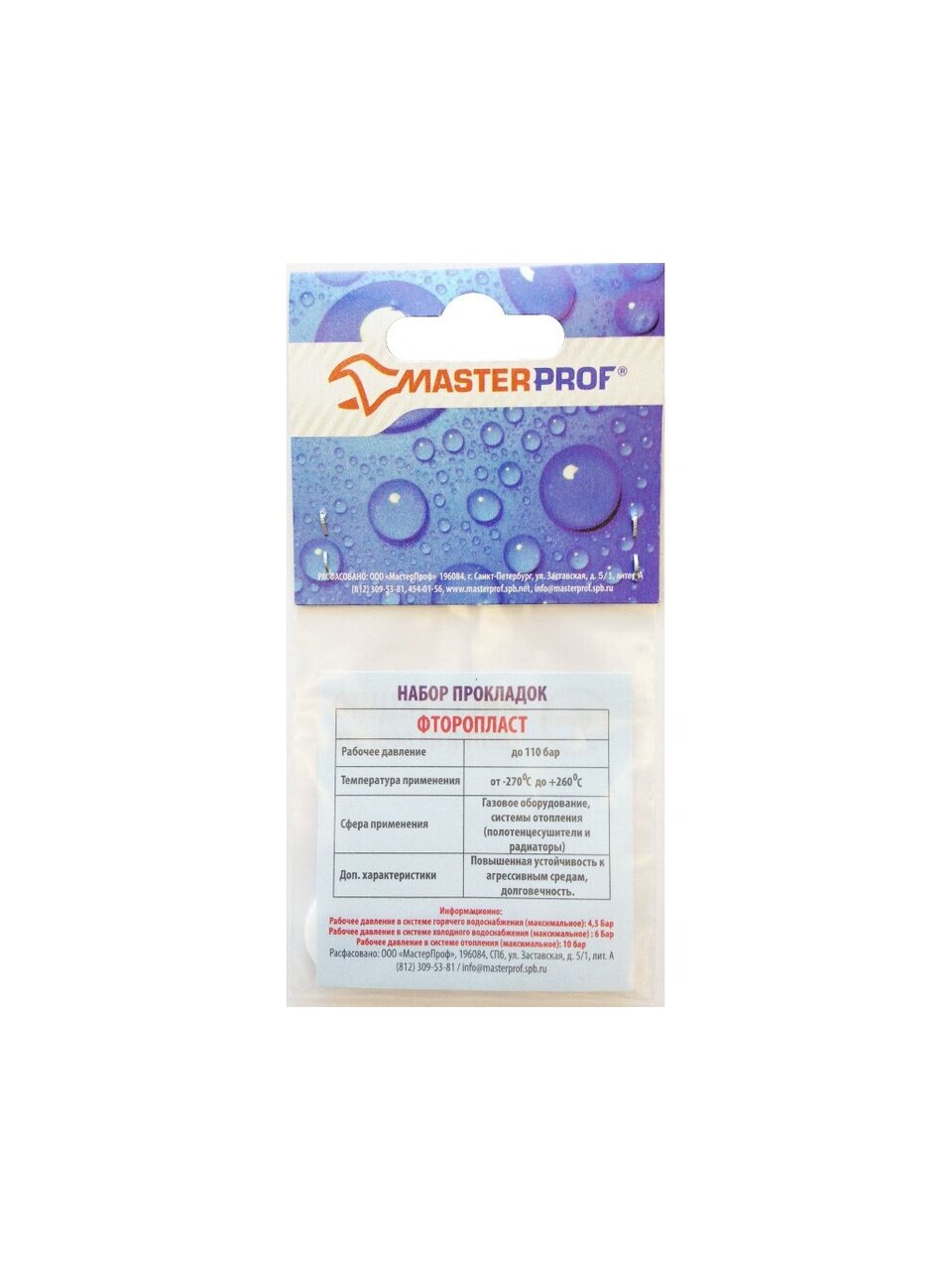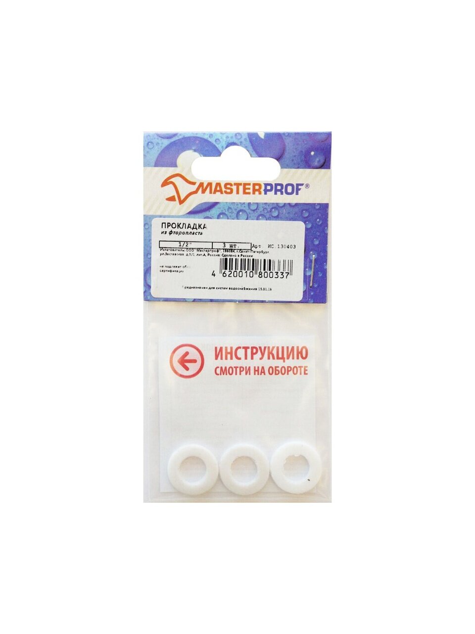 Вы можете приобрести «Прокладка сантехническая 3 шт, 1/2'', фторопласт, MasterProf, индивидуальная упаковка, ИС.130403» и другие товары в нашем интернет-магазине в Обнинске по низким ценам и с бесплатным самовывозом.