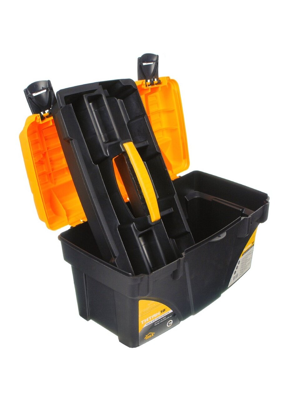 Средний ящик для хранения инструмента и других хозяйственных нужд. Классическая форма, внутренний лоток для эффективной организации хранения. Блоки для мелочей на крышке идеально подходят для размещения мелких скобяных изделий. Надежные замки позволят безопасно переносить ящик с большой загрузкой. Отверстие для крепления навесного замка позволит защитить инструмент при транспортировке.