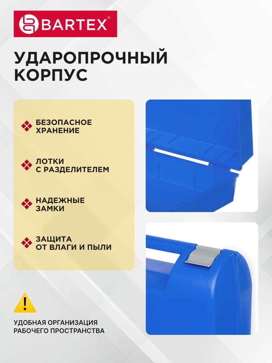 Удобный и вместительный ящик Bartex поможет Вам поддерживать порядок в рабочей зоне квартиры, дачи или гаража. Гармоничное сочетание мобильности и функциональности делает ящик универсальной единицей в системе хранения Ваших инструментов.