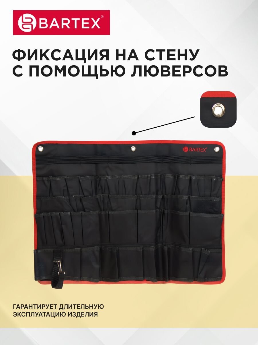 Сумка для инструментов Bartex поможет Вам оптимизировать пространство в рабочей зоне, упростить процесс ремонта и сократить время на поиски нужного инструмента. Вы можете использовать раскладку любым удобным способом: закрепить ее на стене для быстрого доступа к нужным инструментам, либо сделать из нее сумку-скрутку и взять весь необходимый инвентарь с собой.