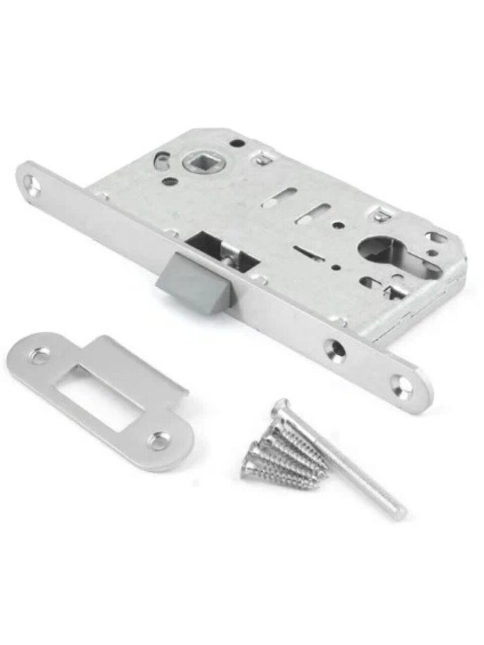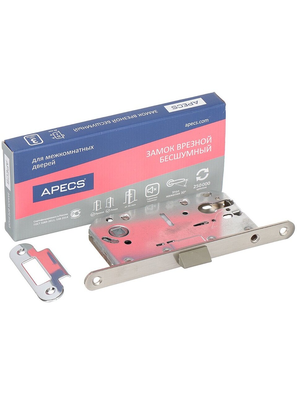 Врезной замок Apecs - полноразмерная защёлка для деревянных межкомнатных дверей с бесшумным пластиковым язычком. Превосходное качество покрытия, точность изготовления деталей, точность сборки, и современная конструкция замка дают высочайшие показатели работоспособности, превышающие самые высокие требования ГОСТ. В комплект необходимо будет подобрать цилиндровый механизм, длина которого будет зависеть от толщины двери.